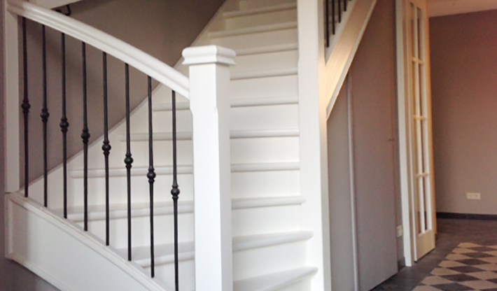 Wij zorgen altijd voor de juiste afwerking van de onderkwart trap. Iedere trap wordt door ons behandeld om vochtinwerking te voorkomen. Andere afwerkingen zijn afhankelijk van de houtsoort. Zo worden vuren trappen altijd wit gegrond behandeld met een speciaal voor de trapindustrie ontwikkelde grondverf. Dit doen we ook met hardhouten trappen. Deze worden soms zelfs tweemaal blank behandeld en/of geschuurd. Een afwerking met wax is ook geen probleem voor eiken trappen.