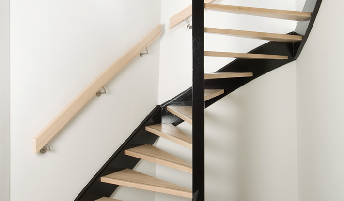 Een spiltrap kan zeer geschikt zijn als er weinig ruimte is voor de trap. Dit is afhankelijk van de indeling van de woning. Een spiltrap kenmerkt zich door een centrale spil waar de treden omheen zijn gepositioneerd. In dat opzicht doet een spiltrap denken aan een wenteltrap. Geeft u de voorkeur aan een rechte trap, dan is een steektrap wellicht iets voor u. Is er een kwartdraai nodig, dan bieden de onderkwart en bovenkwart uitkomst.